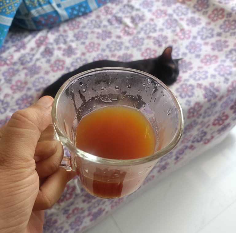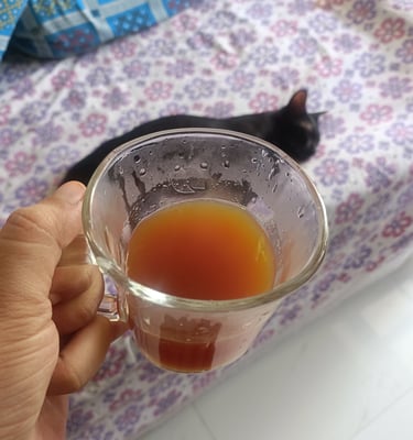 This website is under construction. Here is a photo of lemon tea with my Cat in the background: